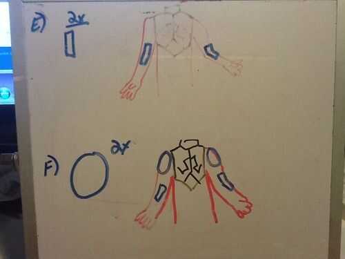 Tomar tu espuma azul y cortar rectángulos largo que Irán dentro de las articulaciones del codo. (foto E). almohadilla de calor y pegamento.