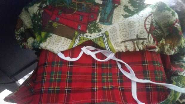 2. en segundo lugar, cortar el patrón... Sólo lo ojos de las instrucciones en línea. Tuve 2 piezas delantal grande y tres tiras para los lazos.