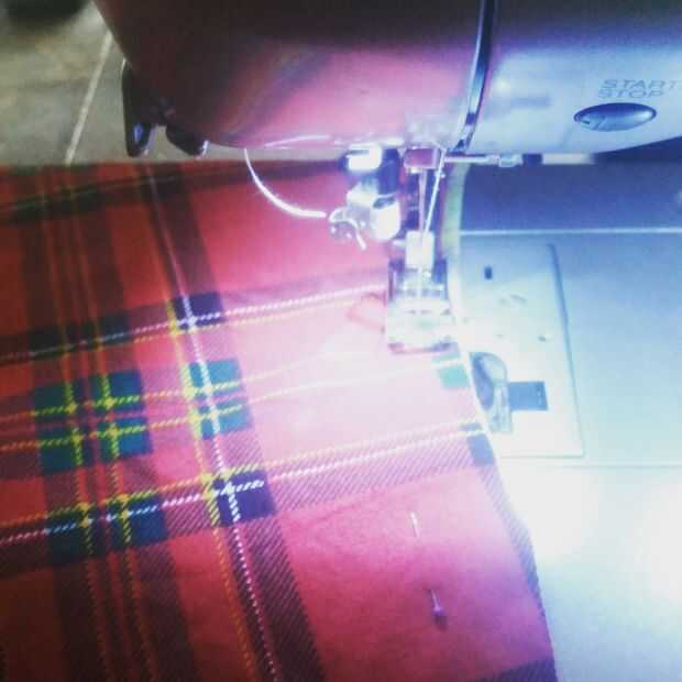 5. después de que las cuerdas están en y se cosen los lados. Tensar la cadena de elaboración de la bolsa del delantal.