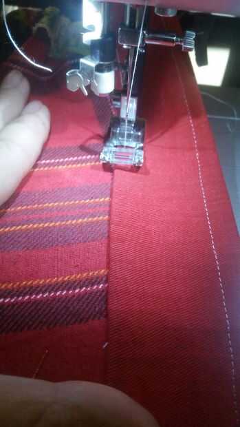 4c. doblar la costura sobre la cadena para formar un bolsillo para la cadena. Hacerlo en ambos lados del faldón.
