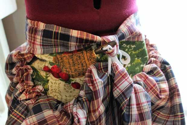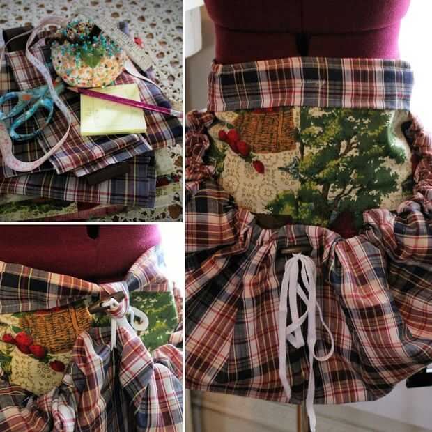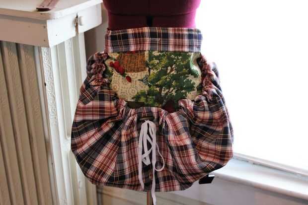Delantal azul-vintage forrado tela con tela escocesa azul. Coloqué la cuerda de tracción en el frente en esta plataforma. Me gusta mejor la cadena de tracción delantera.