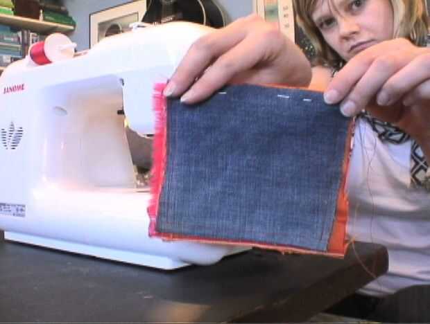 Rollito el bolsillo y doblar la parte superior hacia el interior para obtener un borde limpio. PIN y coser los bordes. Repita para todos los bolsillos que te gustaría.