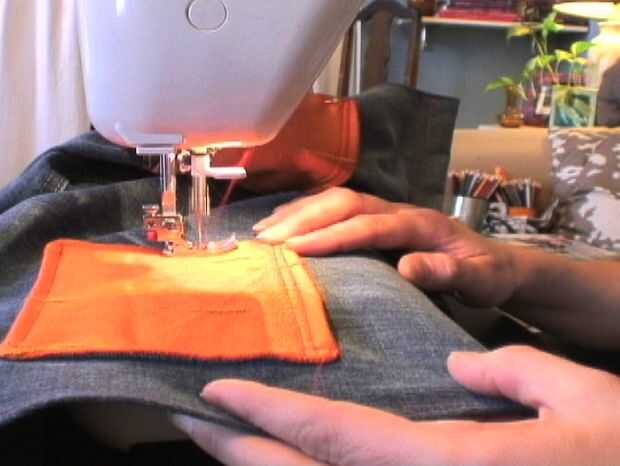 Los bolsillos en lugar del perno y coser a lo largo de los lados y la parte inferior.