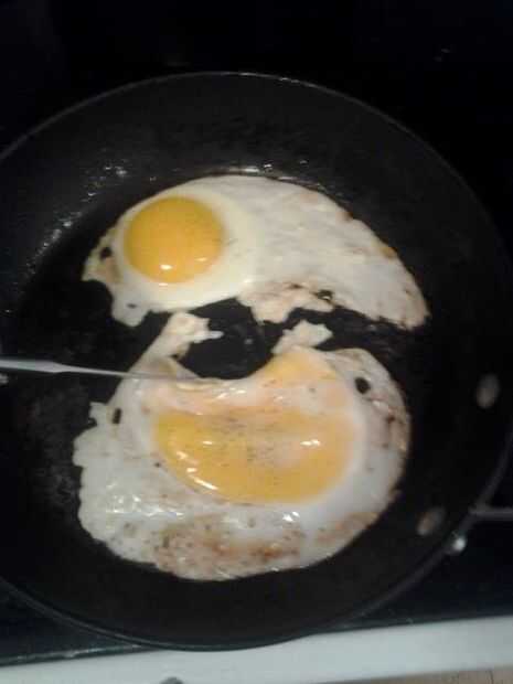 Paso 1: Romper dos huevos en la cacerola y deje reposar dos minutos.