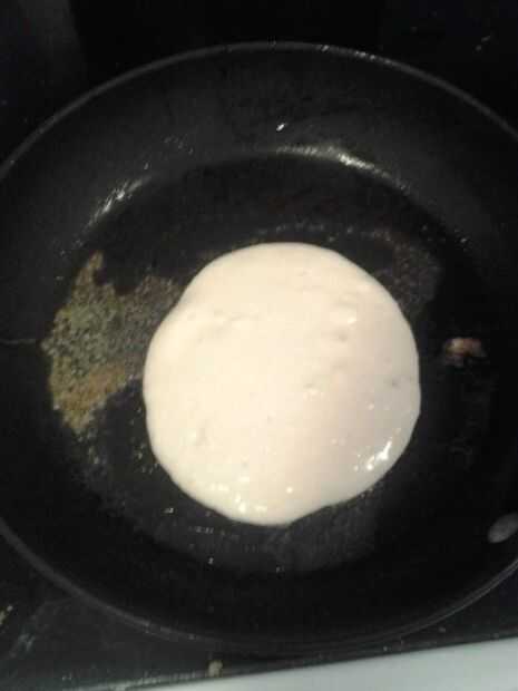 Paso 4: Vierta la masa de crepe en la sartén y se deja reposar tres minutos. La masa sí mismo se forma en una tortilla redonda.