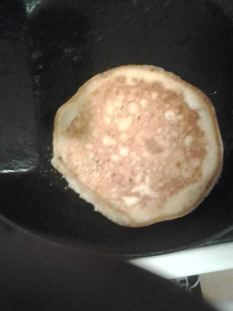 Paso 5: Cuando el panqueque se parece a la foto de arriba está hecho y listo para ser tomado hacia fuera. Repita el proceso para la segunda tortita.