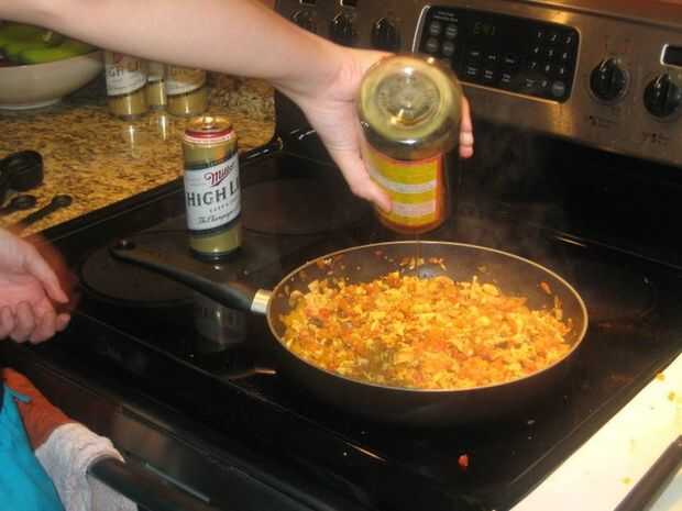 Aminos líquidos Bragg sabe mucho de salsa de soja. Me gusta usarlo porque contiene 16 aminoácidos y es baja en sodio. El chorro de los Aminos líquidos Bragg en la sartén. Revolver. Deje que la rebatiña cocinar por un minuto o dos, permitiendo que el líquido de los Aminos líquidos Bragg se evapore.