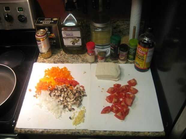 Esta mañana, que quería hacer un scramble de tofu delicioso desayuno! Tuve que usar unas verduras de mi nevera! Por eso yo llamo a esto un scramble de tofu de nevera! He añadido unas especias de mi despensa y para mantenerlo veganas y sin gluten, he