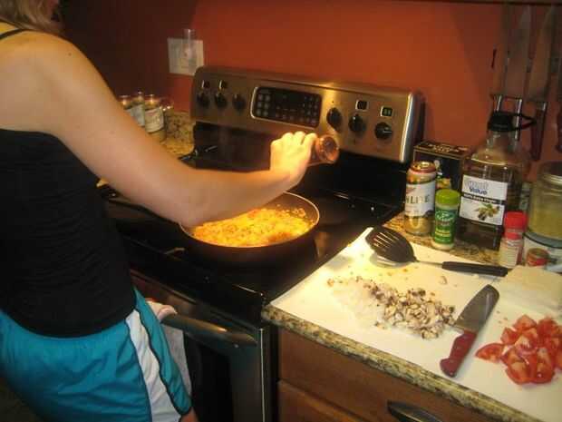 Añadir el ajo en polvo, cebolla en polvo, paprika, Chile en polvo y sal. Revuelva los vegetales. Gusto el despegue en tiempo mínimo para ver si prefieren más condimento.