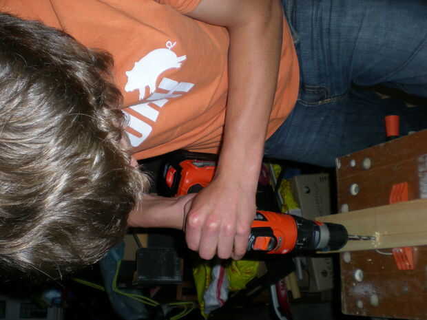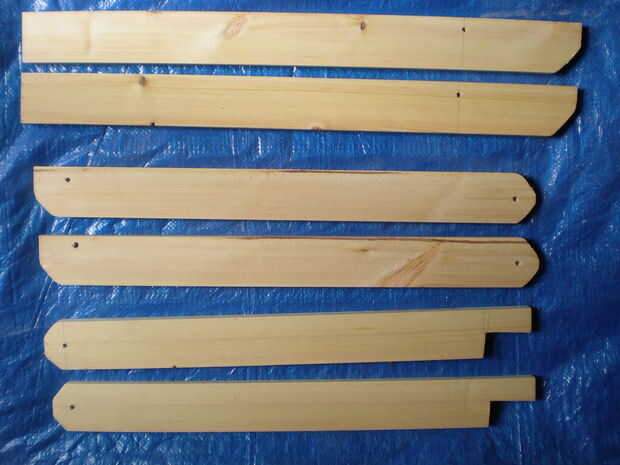 -El corte en sección de las tablas más pequeñas debe descansar sobre los tablones más largos cuando doblado para arriba