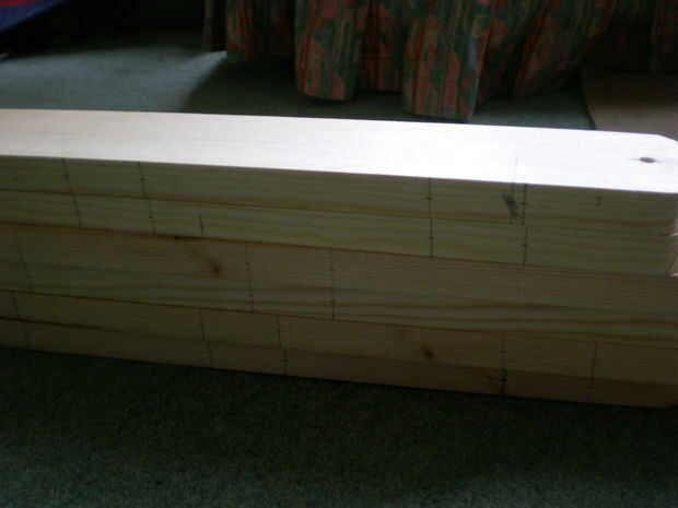 8. regla líneas perpendiculares a través de la madera en todas las marcas.