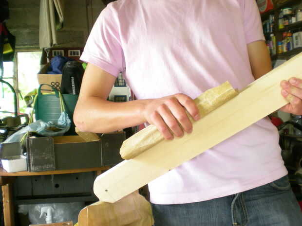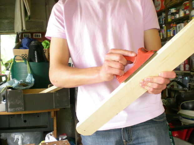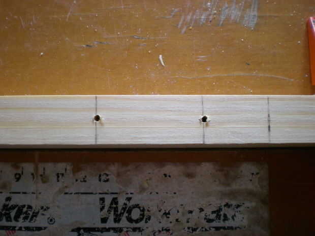 Después de taladrar los orificios podemos acabar las tablas pequeñas. El borde superior (uno con los agujeros) sólo debe ser enarenó ligeramente ya que necesita sentarse a ras con las tablas grandes. Dio el borde inferior un bisel fuerte.