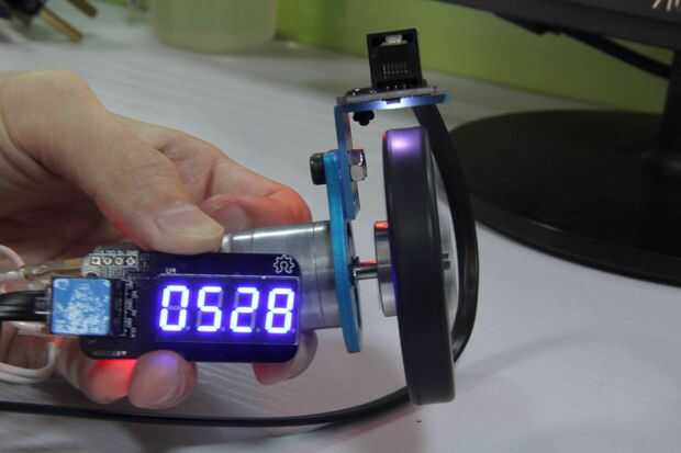 * Descripción: estoy usando un Makeblock Me-LightSensor para hacer un detector de velocidad de rueda.
