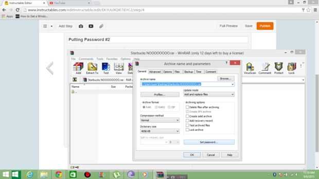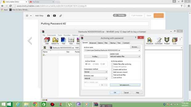 ¿OK así que le dije en la introducción que necesitas WinRAR, así descargarlo? OK, así que un archivo .rar de winrar, (cuadro en la parte superior) y luego vamos a poner la contraseña. ¿Cómo así? Te enseñaré. Así que primero, abra el archivo y luego dejar documento de word y luego pulse guardar. Ahora que el documento lo de winrar. Ahora dice nombre de archivo y parámetros. En primer lugar, haga clic en "Set Password" y luego poner su contraseña y pulse OK. y entonces ya está!
