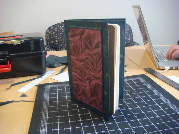 Este libro también tiene un mecanismo muy único de encuadernación que permite insertos reemplazables y también se mantiene perfectamente plano al escribir en su regazo, el coche o en el aire.