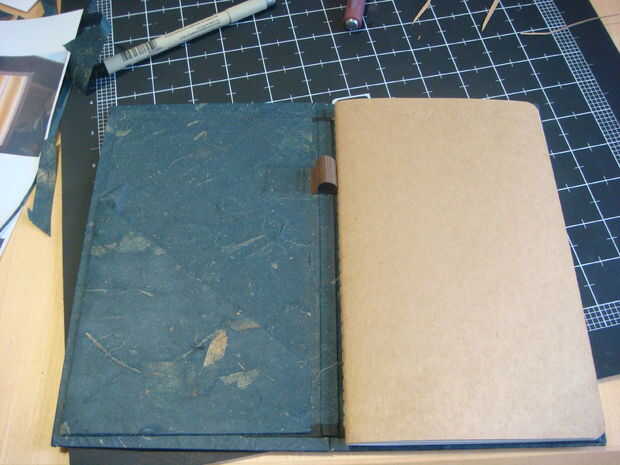 Así irá inserto en el libro, el libro se cierra sobre el inserto. Si hiciste la tapa más grande que el inserto como dije en el paso 2, entonces la cubierta se cierra perfectamente sobre el libro. Esto es bueno, pero no deja una pluma. Para tener la habitación, necesita hacer la cubierta posterior 1/4 pulgadas más ancho, o cualquier grueso de su pluma es. Y si no desea que su libro busca desproporcionado, entonces usted necesita hacer la portada más amplia también. Entonces usted puede ir sobre la adición de un sostenedor de la pluma. ¿Tiene sentido?