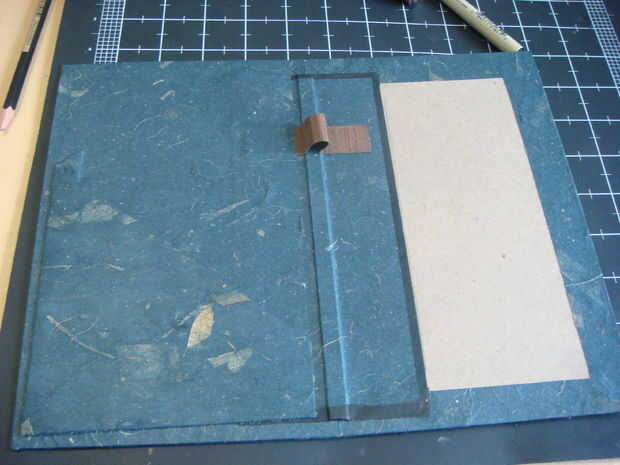 Antes de pegarlo en, corté un trozo de tela de libro que era dos veces tan ancho como yo quería y había doblado encima en sí mismo, por favor ver fotos para ver cómo la doblé. Entonces utilicé pegamento de papel, herméticamente cerrado.