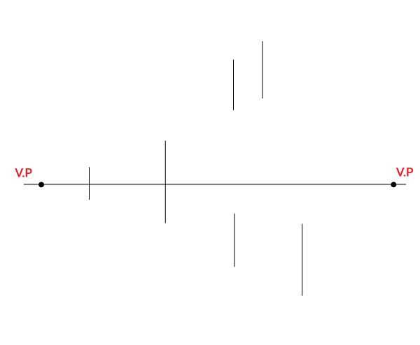 Coloque dos círculos en ambos extremos, estos serán los puntos de fuga (V.P); puede colocarlos en cualquier lugar en la línea.