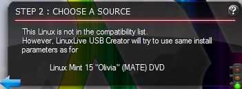 2 - seleccionar una fuente - con el propósito de este instructable, pinchas en la sección ISO/IMG/ZIP. Aparecerá un menú y usted tendrá que desplazarse a la ubicación de la. ISO que descargó. Después de seleccionar esto, la imagen de abajo tendrá una barra de progreso que comprueba la compatibilidad de la. ISO. Si es compatible, mostrará la versión de Linux. Como la segunda foto.