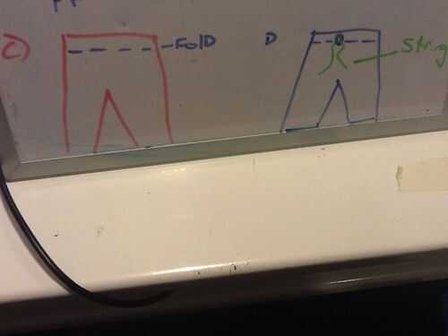2. . Doblar la parte superior del pantalón en la cintura y colocar un cordón para que puedas tener un lazo.  (pic 3 + foto 4)