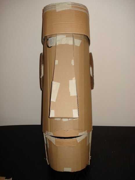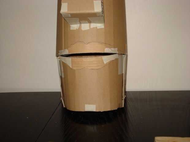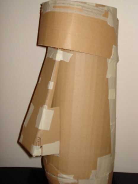 Empecé con la frente grande protrouding. Esta fue otra tira de cartón, cinta en la parte superior de la cabeza. Corre al ras con la cabeza en cualquier lado y se erige orgulloso en la parte delantera como una frente de la máscara.