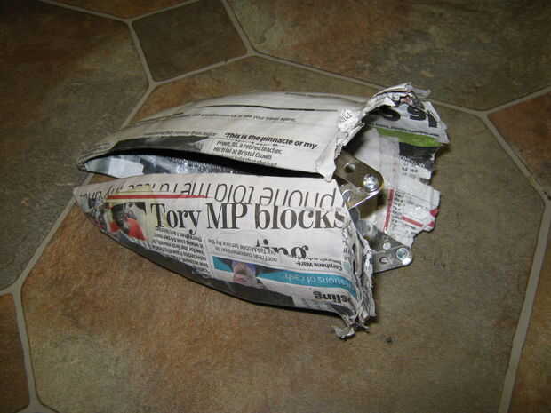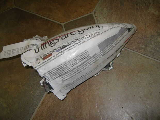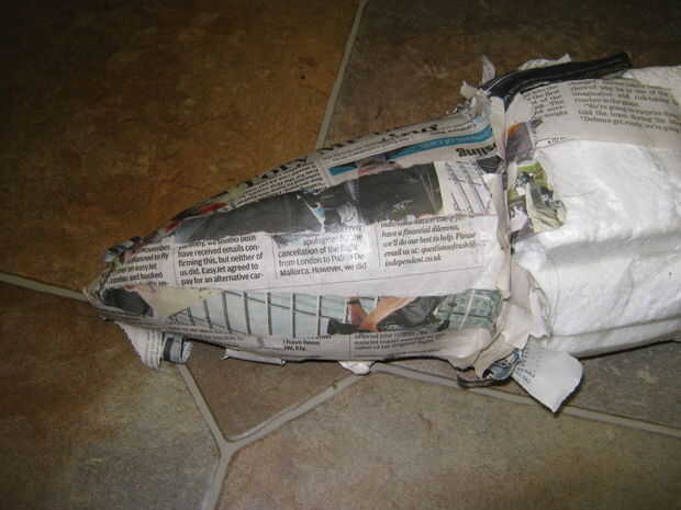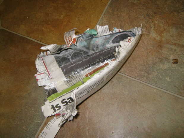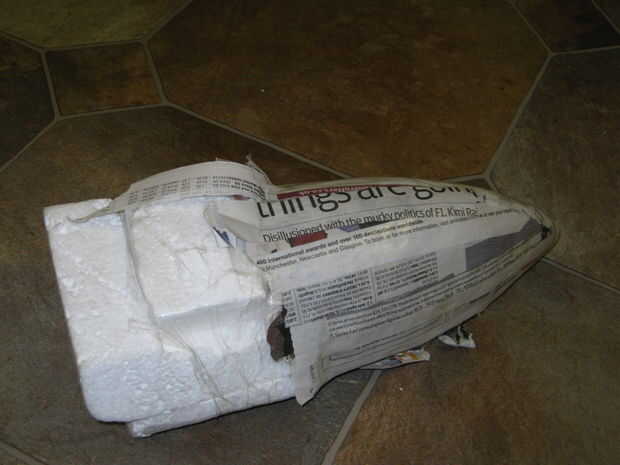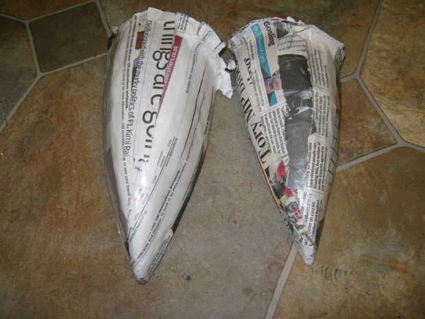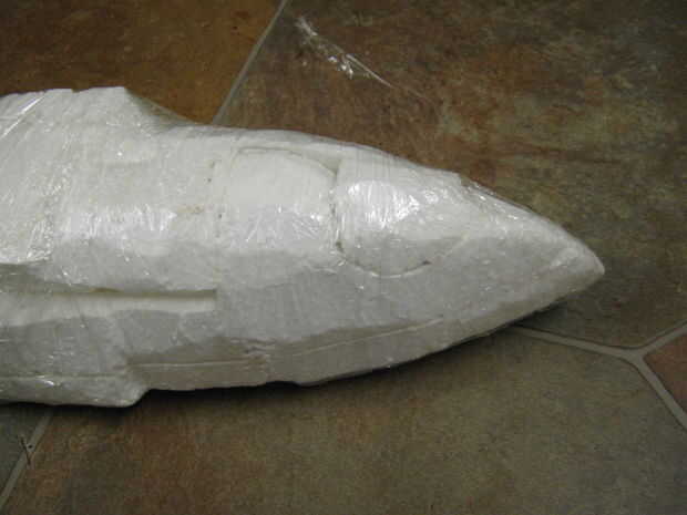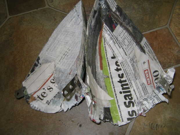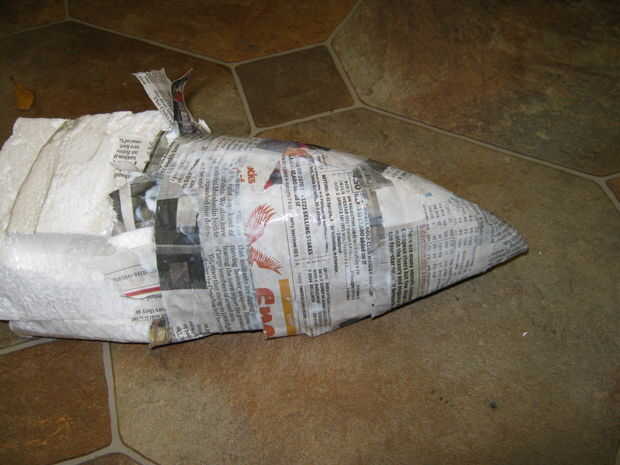 Hacer primero un patrón básico, aquí se ha expandido espuma de poliestireno. Como el "sombrero" envuelto en capas de film transparente aplicado luego de PVA y papel, en etapas de secado entre.