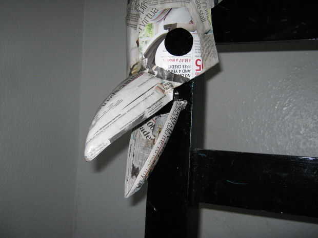 Para los ojos, cortados los agujeros en tarjeta fina y prueba de posición mientras se está usando la cosa, y luego pegar.