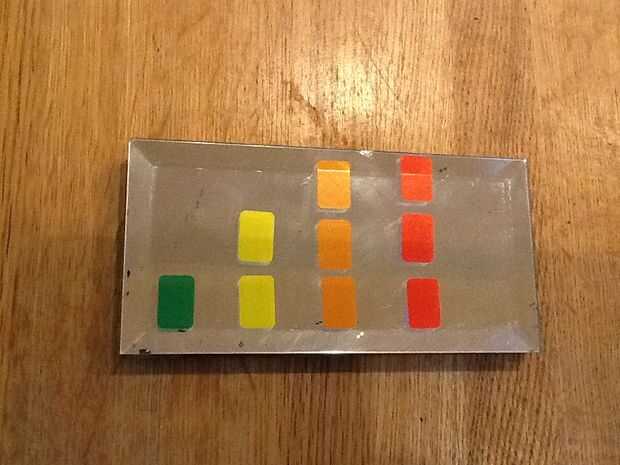 Entonces viene el relleno. Llevé a trozos pequeños de cartón (cerca de 1,5 pulgadas al cuadrado) y ponga pegajoso detrás plástico en que, tenía entonces a mano pintura roja y verde como los interruptores en uno real. Luego añadí la mitad un palo de piruleta en cada lado de la caja (tenía algunos de cuando mi hermana intentó hacer piruletas pero quemaron). Y para acabarla he utilizado una muestra de azulejos de espejo con pegatinas (que ocurre para el tablero de tarjeta) y me pegué en la parte inferior.