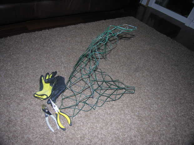 Primero tienes que conseguir el cable de pollo o valla de alambre que usted empezará a formar cualquier forma usted desee su traje para ser. Utilice el cable para conectar todas las piezas juntas. Puede utilizar las pinzas para este paso. y guantes!!!
