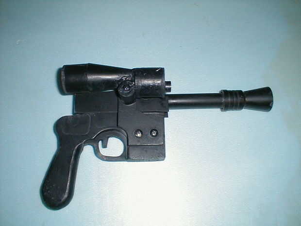 Ahora hacer el alcance de un par de clavijas de madera y otra sección del embudo un pegamento un tubo de pequeño diámetro en el extremo del ámbito. Que el alcance del soporte de una pieza de 1/8 cartón y un pasador y seguro a la pistola con tres tornillos. Pintar negro!
