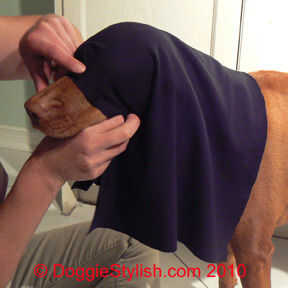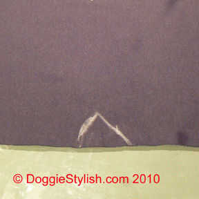 Coloque la tela sobre la de su perro y una pequeña cantidad de tejido para por ella hasta la boca de aspiración. Con un marcador de china, haga una marca triangular en la reunión. Luego prender el dardo, el fuerte punto lejos de la cara de su perro.