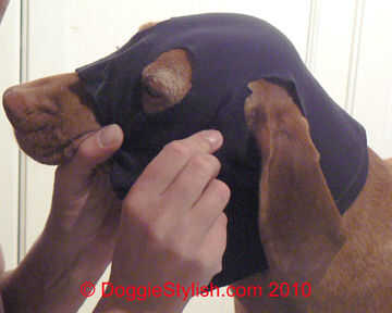 Vuelva a colocar la máscara y ajústelo al lado de la mejilla con un dardo. Marque la posición de dart con un marcador de china y repita con la otra mejilla