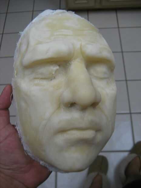 Día 2, sacó la máscara de látex seco, recorta los ojos y trató. Ajuste como un guante! Como se puede ver la boca está cubierta totalmente para después cortar a lo largo de las líneas de la mejilla y quitado de la boca y el mentón (necesito hablar del heno).