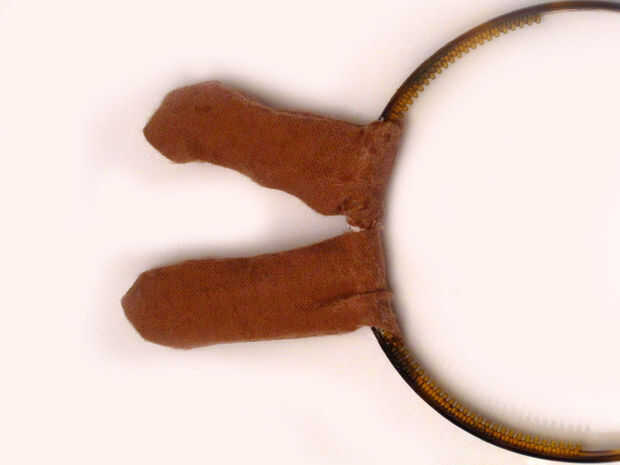 - Lugar primer cuerno centrado un poco fuera del centro de la diadema para que cada cara del cuerno está en un lado de la diadema. El centro será directamente entre los cuernos.