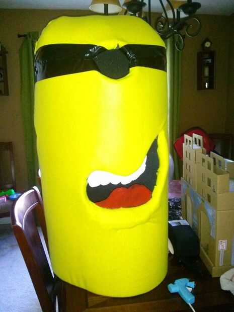 he utilizado un básico ciento.50 acrílico blanco y rojo, la espuma realmente absorvida la pintura así que tuve que darle unas capas pero el sharpie negro solía esbozar con demostró a través de un poco por lo que veía realmente muy bien. Después de dejar les seco, que caliente pegan a los dientes y la lengua en. He creado monos y cintas con la tela del dril de algodón y caliente pegan los botones así como el babero. No soy ninguna costurera así que todo lo que hice fue con pegamento o el velcro que se pega con calor, he creado la forma de los pantalones cortando una U grande para cada lado. cierra con velcro.