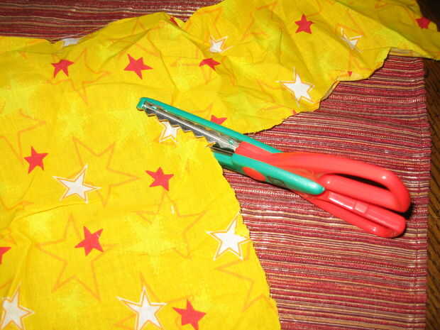 Reunir tus retales de tejido o plazas acolchado (hemos utilizado plazas acolchado, disponibles en la mayoría de tiendas de artesanía), puntada de líquido o cualquier pegamento para tela de secado rápido (disponible en tiendas de artesanía y Wal-Mart) y tijeras. Utilizamos tijeras que cortan con un diseño de zig-zag, pero tijeras normales va a hacer muy bien.