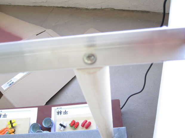 La cortina de sushi se hizo de una bolsa azul de IKEA. Corte un lado de la bolsa y cortar tres cortes en él. Para poder verme, atornilla otro conjunto de luces de puerto de la carga a la barra superior. Esto me permitió a la luz el restaurante sushi todo. Una luz en la me, una en el mostrador y uno en la parte superior del mostrador.