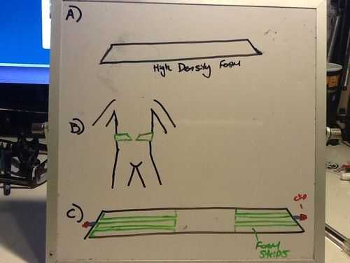 Tomar su espuma de alta densidad y cortar una tira larga. Los extremos serán en ángulo a cada lado (foto A). medida que hay un poco de un pequeño espacio entre termina cuando usted usa alrededor de su cintura (foto B)