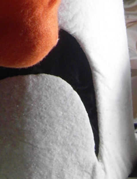 La malla es fácil sin embargo. Simplemente rociar pegamento o blanco la cola en el interior detrás de la boca entera. Asegúrese de que realmente pegue los bordes hacia abajo como su cabeza deslizarse tirará de la malla.