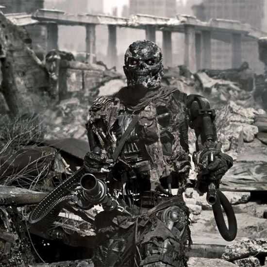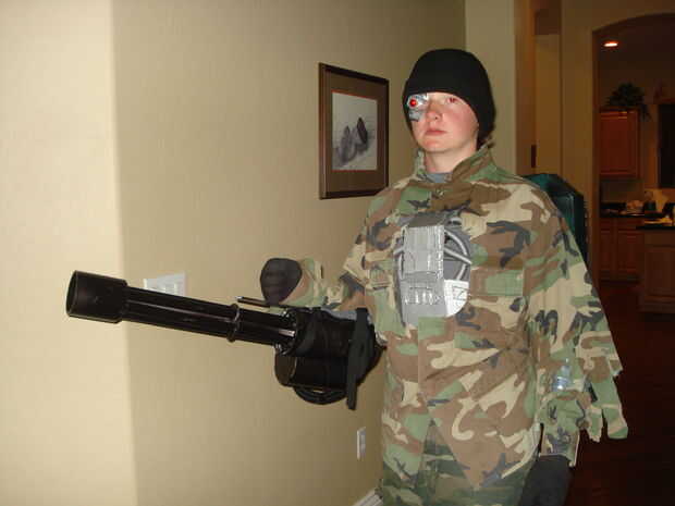 El traje final incluye una ametralladora, un ojo rojo del light-up, un pecho iluminado y varias partes del endoesqueleto.