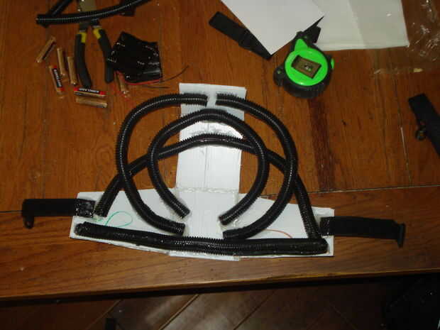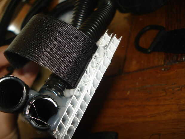 Otra cinta se utiliza en la parte posterior para sujetar la placa del pecho para el usuario. Esto se puede ver en la cuarta foto.
