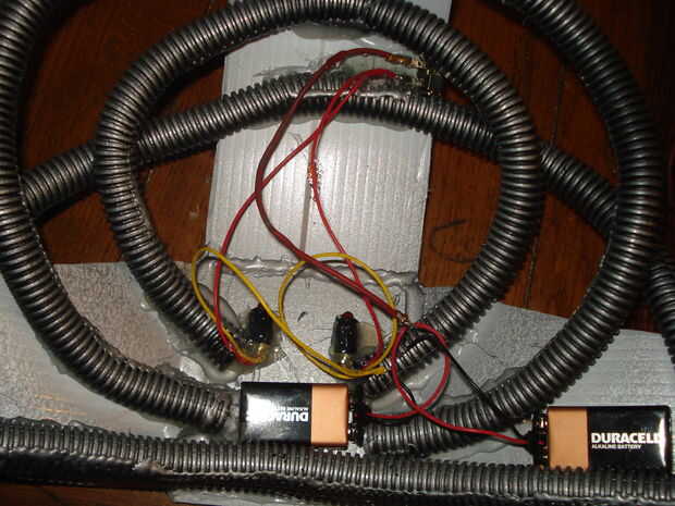 Por último, alambré el LED en el ojo a una sola batería en el centro. El interruptor de este circuito se encuentra en el lado opuesto del otro interruptor.