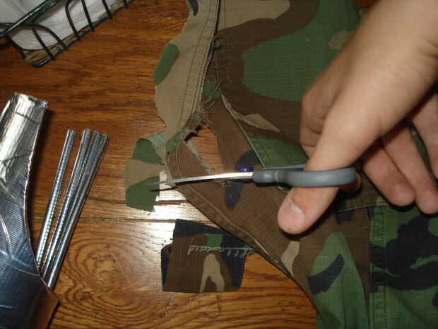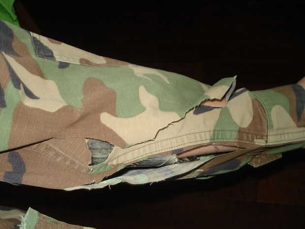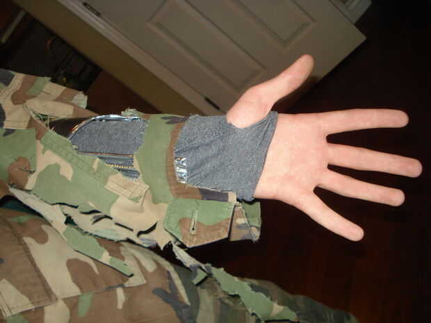También, hacer un corte limpio desde el codo derecho a la muñeca derecha. Este corte se utiliza para atar la ametralladora a su brazo.