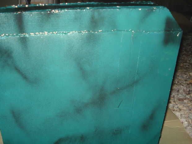 El paquete de primero fue pintado de un color verdoso, luego agregaron manchas y rayas negras. Pensé este color verde era malo en primer lugar, pero en la oscuridad con las marcas negras, se ve muy bien.