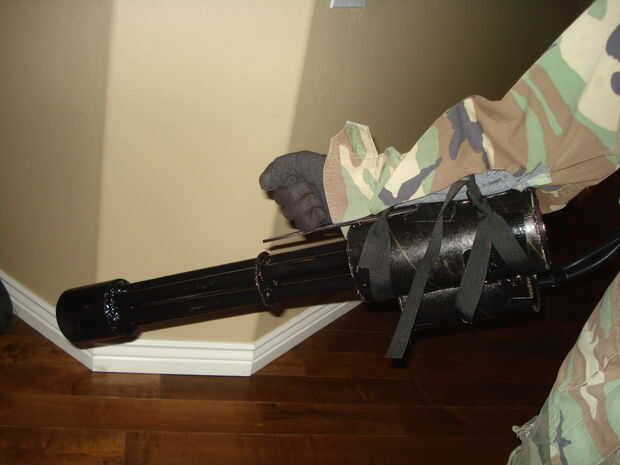 Para hacer que los mecanismos que conducirían a una ametralladora, corte un 9 pulgadas y un 6,5 en. sección del tubo de envío. Utilice sobra tubo un correo electrónico de su brazo si tiene alguno. Corte una sección longitudinal de 3 pulgadas en el tubo de 6,5 pulgadas y pegar el lado cortado para la sección de 9 pulgadas. Este será el alimentador de la bala.