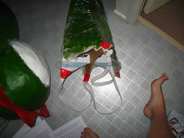 Para la silla de montar sólo cubrí mi mochila con la tapa naranja de uno de los cojines pidió prestado y llevó a cabo con grapas y pernos de seguridad.