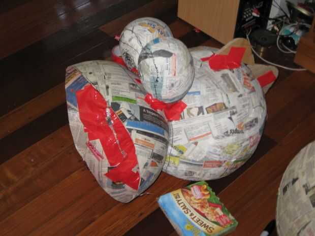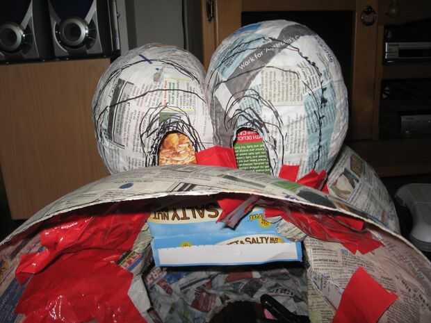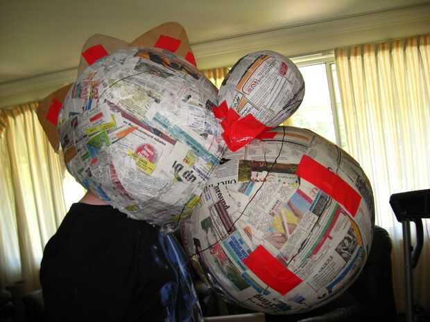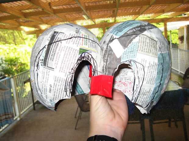 La mitad delantera de la nariz con la mitad trasera se alinean y asegúrelas con cinta adhesiva.