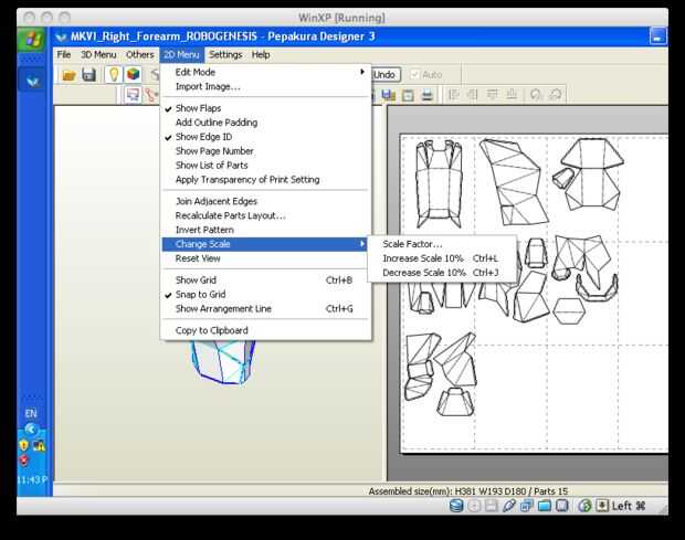 Si utiliza archivos de ROBOGENESIS, introducir su altura (más un poco) en pulgadas en la caja de escala. Leo para añadir unas pocas pulgadas para el acolchado, pero he añadido ~2.5 pulgadas y la mayoría de las piezas era un poco demasiado grande. Es mejor imprimir una foto de ti mismo y del jefe y el escalamiento en consecuencia.