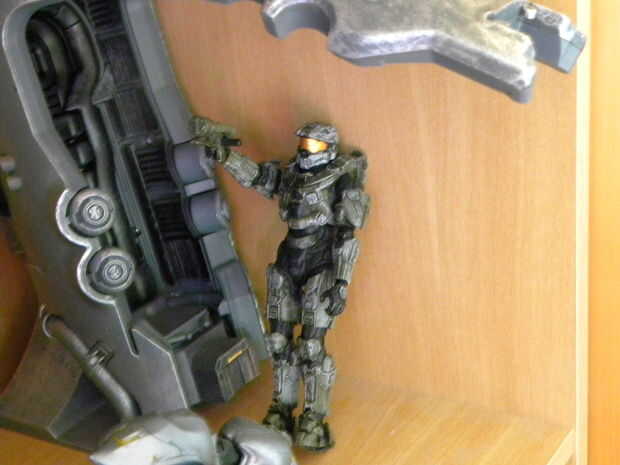 En vez de usar el pepakura, hice todas las partes de cero como me enteré que pepakura es increíblemente complicado. Aunque pepakura puede ser útil para la guía de fotos y modelos. Después de que mi equipo se estrelló en mí, fui a utilizar una figura de acción de Jefe Maestro que funcionó bastante bien.