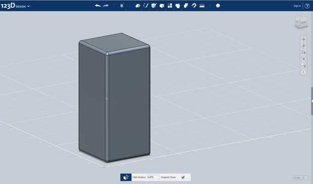 2. seleccionar todos los bordes y añadir un filete de .075.